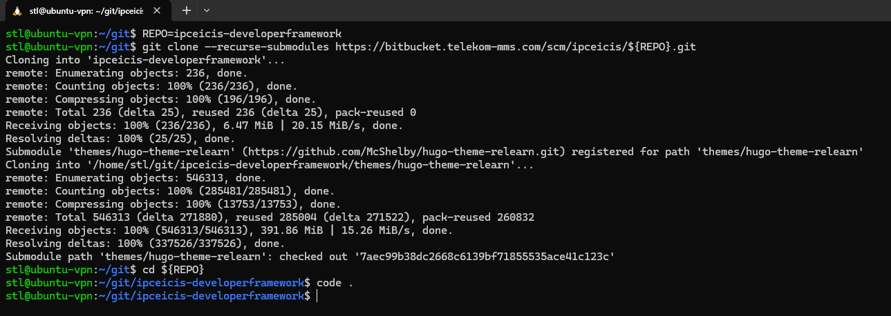 3. Clone this repo: git clone --recurse-submodules https://bitbucket.telekom-mms.com/scm/ipceicis/${REPO}.git